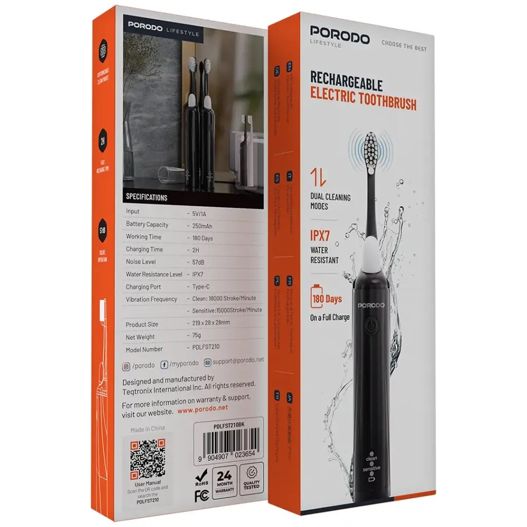 مسواک دندان قابل شارژ پرودو porodo-lifestyle-rechargeable-electric-toothbrush-pdlfst210bk