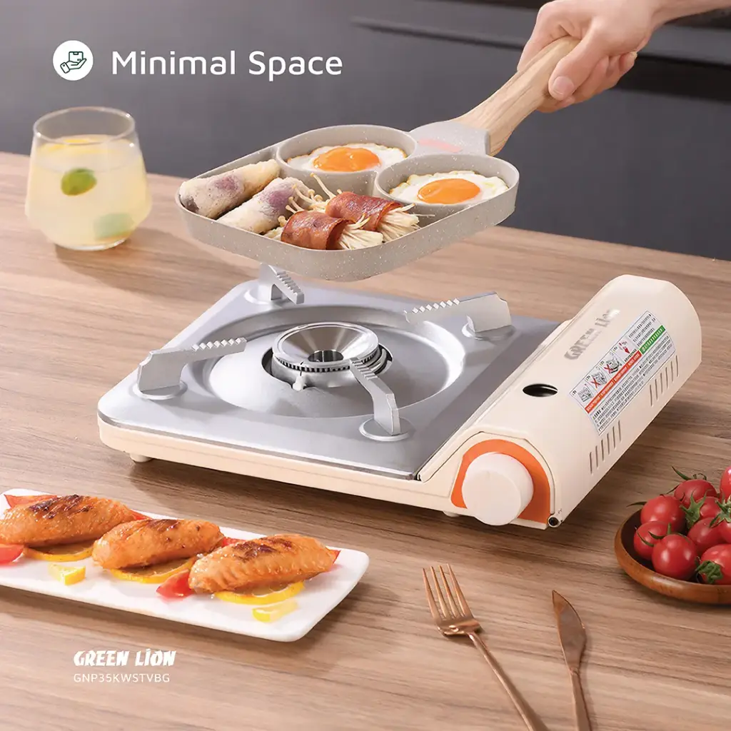 اجاق گاز قابل حمل فضای باز Green Lion با ظرفیت ۳.۵ کیلووات به رنگ بژ، برای پخت و پز در تمام ماجراجوییهای فضای باز شما عالی و کارآمد است. این محصول از مواد با کیفیت بالای آهن، آلومینیوم و PP ساخته شده است. این محصول دارای توان گرمایشی قدرتمند ۳.۵ کیلووات است و میتواند وزنهایی تا ۱۵ کیلوگرم را تحمل کند. با ۱۰۰ دقیقه زمان سوختن مداوم و مصرف گاز بوتان ۲۵۵ گرم در ساعت، این مدل برای استفاده مداوم در آشپزی، کمپینگ، ماهیگیری، پیادهروی و پیک نیک مناسب خواهد بود. علاوه بر این، از طراحی بسیار نازک و احتراق الکترونیکی برای استفاده و نگهداری راحت استفاده میکند. جمع و جور، بادوام، مناسب برای پخت و پز در حال حرکت.